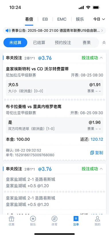 公告: 1、串关保险金 最高88888元 2、五大联赛比分投注保险!赛果0-0包赔 高达1888! 3、五大联赛冠军竞猜 立返50% 最高1288元! 4、EMC霸王餐100%包赔! 5、关于禁止国家队、俱乐部等相关职业成员参与游戏的声明 6、风控提醒 7、【EMC防诈骗】重要提示